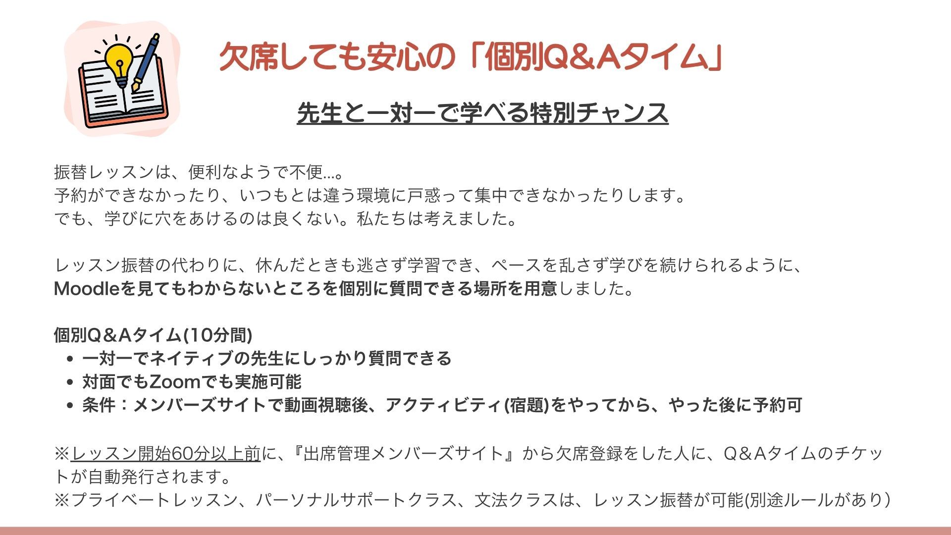 重要🍁個別Q&Aタイムの予約ルール(プライベートレッスン・パーソナルサポート・文法クラスは除く)