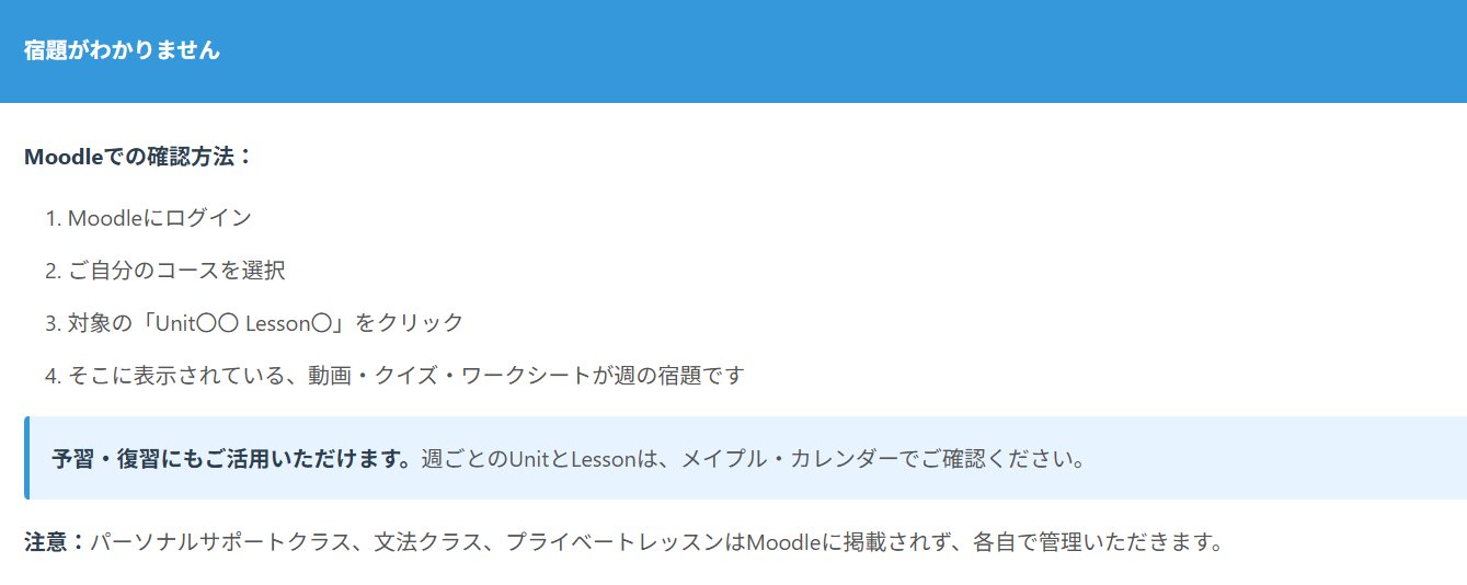 ※スティッカーファイル内の「Homework」ページに、各自で宿題内容を記入しているクラスもあります。
